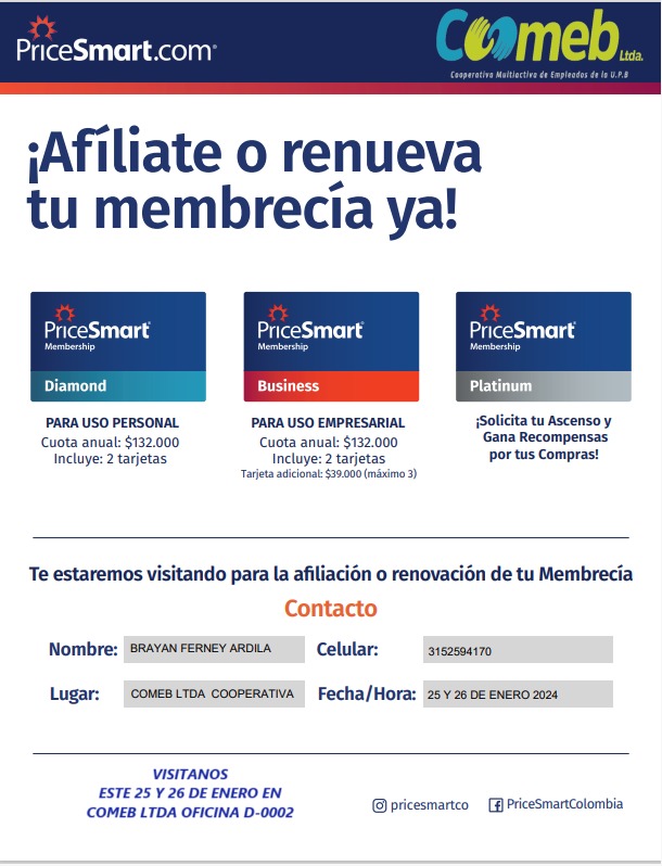 corresponsal bancario Bancolombia y punto Coopenesa, en nuestras oficinas de Coomeb. (Transacción mínima: $10.000, sujeta a disponibilidad de cupo)